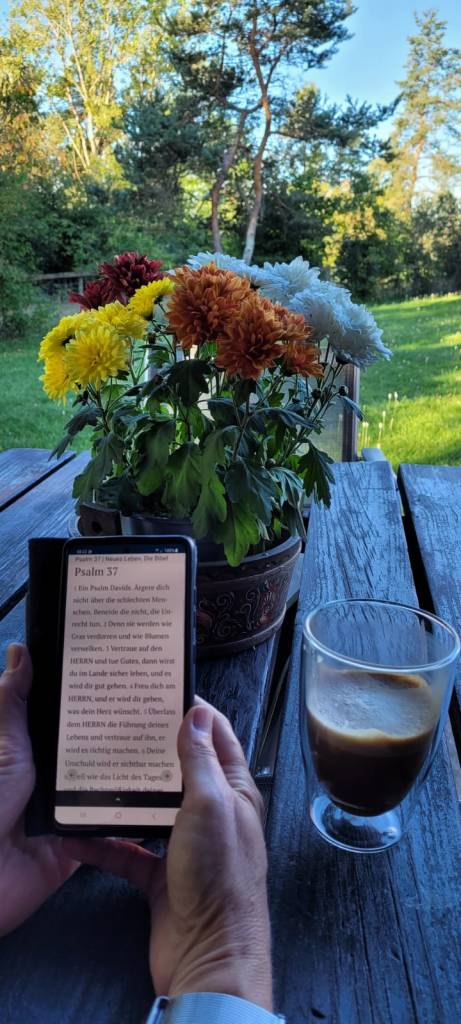 Was vielleicht ein bisschen merkwürdig klingt ist seit ein paar Wochen mein Start in den Tag. Die Psalmen lesen, jeden Tag einen über den Sommer und vielleicht noch darüber hinaus. Das war die Grundidee. Zuhause in meiner gedruckten Bibel fing es aber schon an: Trotz Lesebändchen konnte ich nach kurzer Zeit nicht mehr auf Anhieb sagen, welcher der Psalm von gestern war. Stehen ja mehrere auf den beiden aufgeschlagenen Seiten. Im Urlaub auf der schwäbischen Alb mit der Bibel auf dem Handy war es dann ganz vorbei. Also begann ich mich, wie oben beschrieben, von hinten vorzutasten. Und dabei habe ich nicht nur herausgefunden, welcher Psalm neu dran war. Sondern auch festgestellt, welches Glück in der Wiederentdeckung liegt. „Ja, das hab ich gelesen. Diese Sätze kenne ich. Und sie haben mich berührt. Angesprochen. Oder irritiert.“ Rückwärts zu blättern zu dem, was ich kurz zuvor gelesen hatte und es wiederzuerkennen, wurde plötzlich zu einem Wert für sich. Baute eine Verbindung auf. Eine Beziehung. Ja, ich kenne dich. Was für ein Glück.